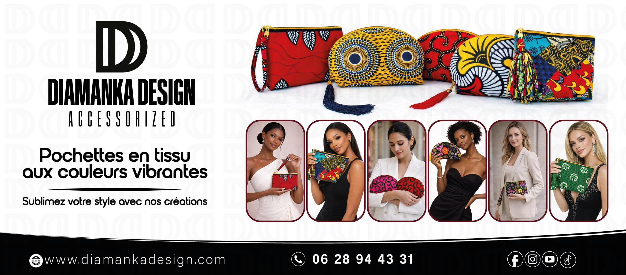 Diamanka Design met en valeur l’élégance africaine à travers des créations uniques et colorées. Nos pochettes sont conçues avec des tissus de qualité, alliant tradition et modernité. Parfaites pour sublimer vos tenues, elles vous accompagnent au quotidien comme lors de vos occasions spéciales. Chaque pièce est pensée pour révéler votre style avec originalité et raffinement.